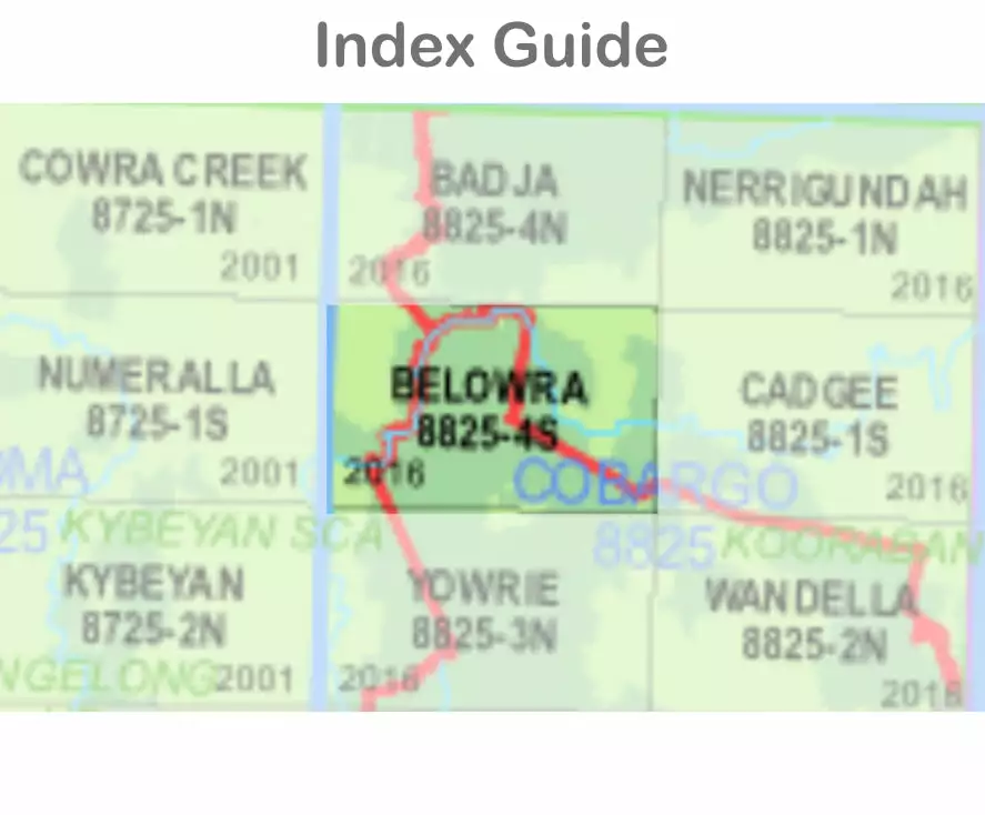The Belowra 8825-4-S 1:25,000 scale New South Wales topographic map shows contours, streams, roads, tracks, buildings, place names, points of interest, vegetation, selected administrative boundaries and much more.