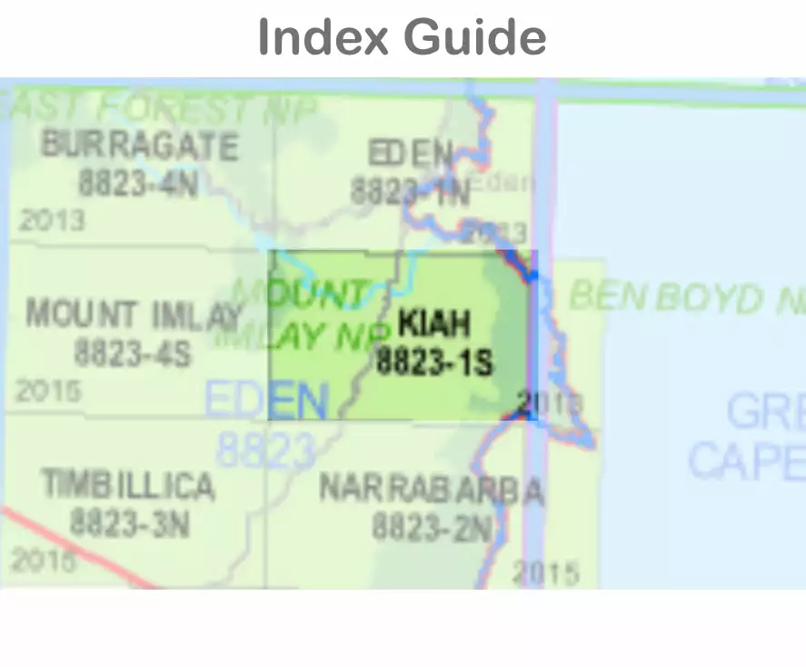 The Kiah 8823-1-S 1:25,000 scale New South Wales topographic map shows contours, streams, roads, tracks, buildings, place names, points of interest, vegetation, selected administrative boundaries and much more.