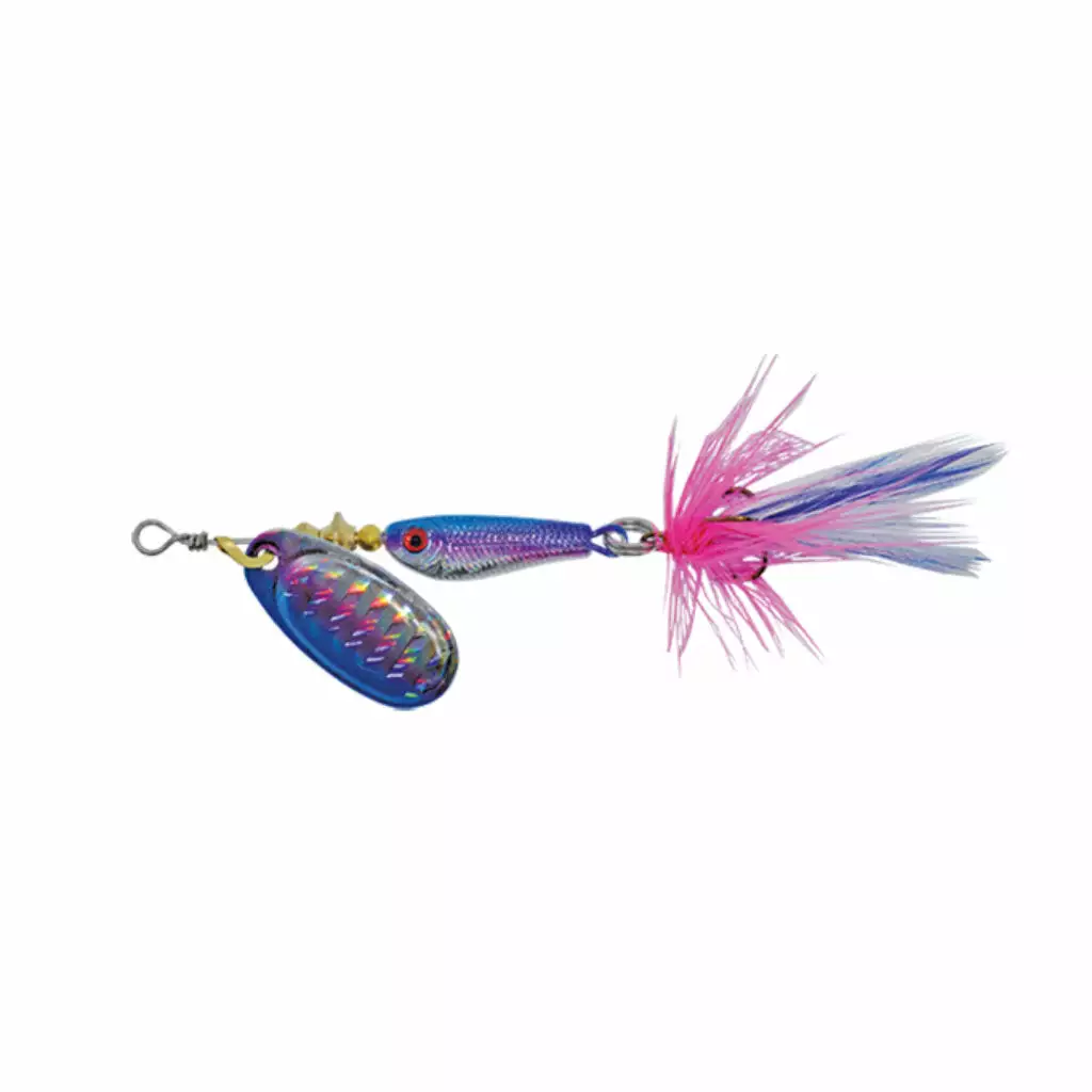 The Bushranger Headspinner features a realistic baitfish body for added weight and ultra realism. It also features a tail feather for added attraction and a perfect spinning action.