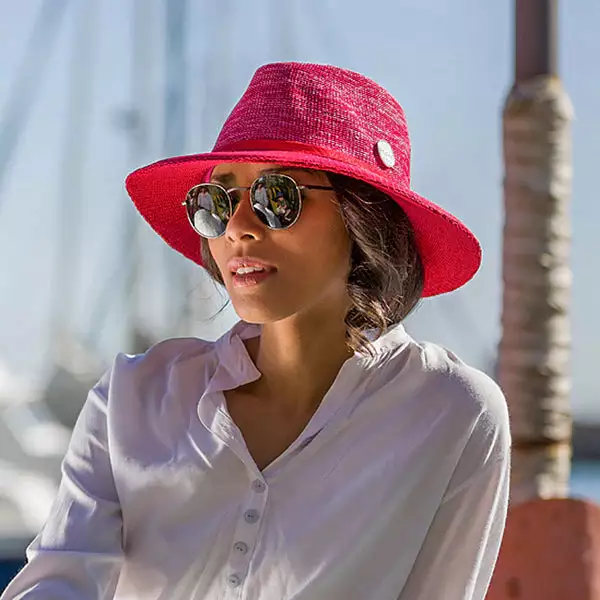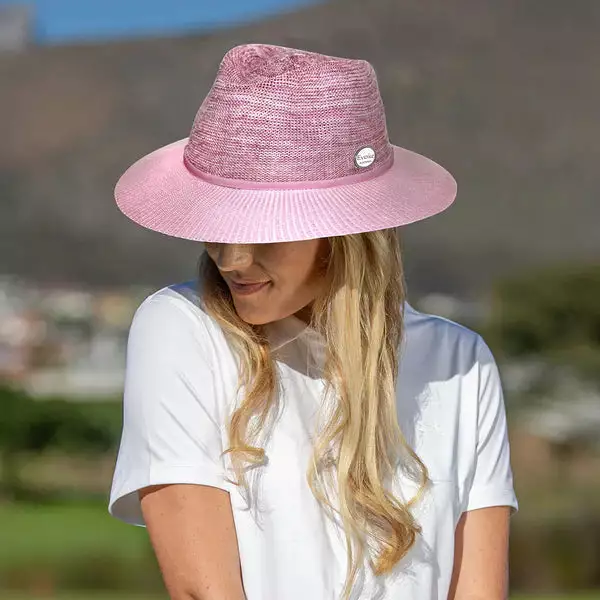 The Aston Ladies Fedora will make a perfect ladies golf hat designed using UPF50+ contrasting colours of fine polystraw. The Aston is an ultra-lightweight and durable hat which maintains its shape. Resistant to wind and water, it is travel-friendly with a 7.5 cm brim providing great sun-protection.