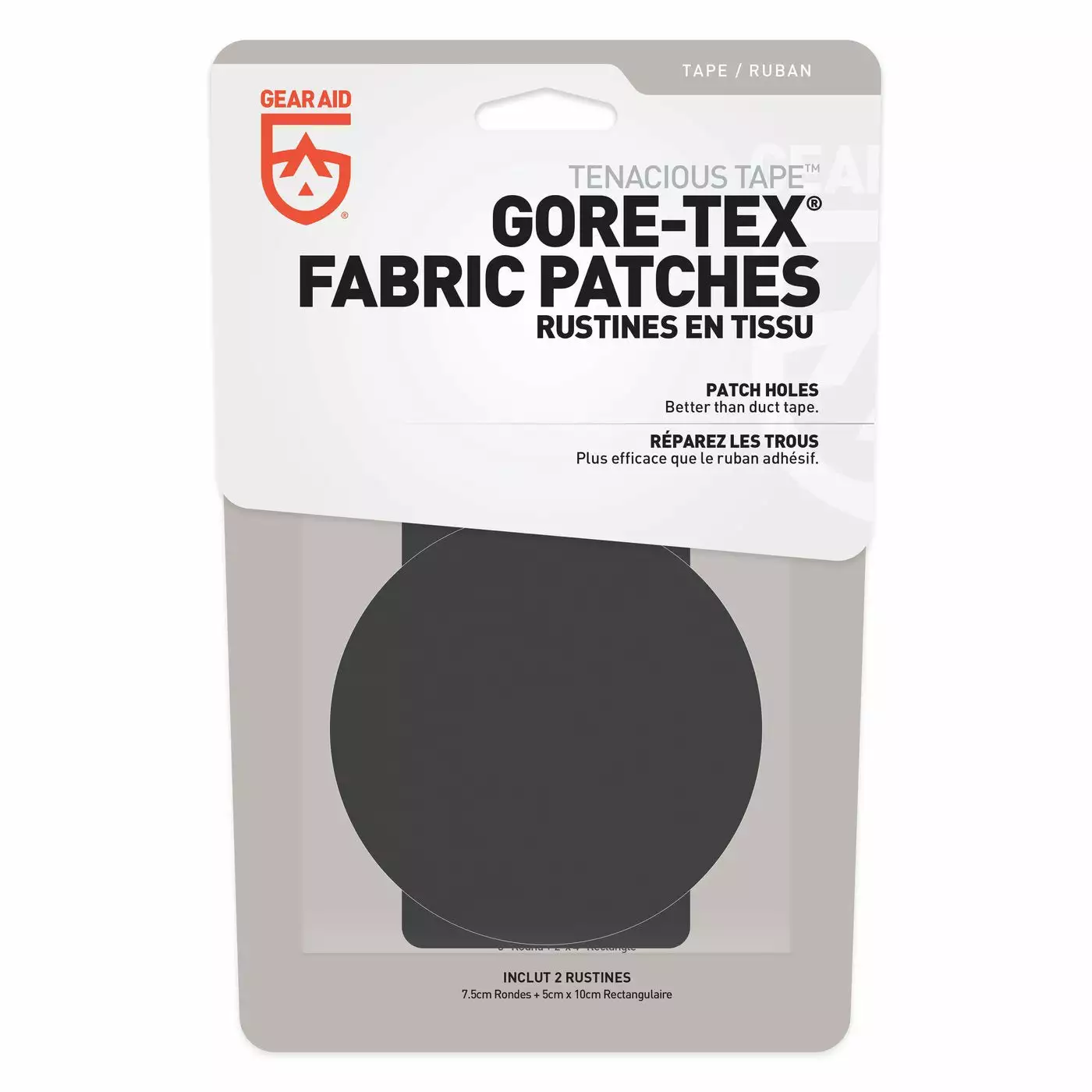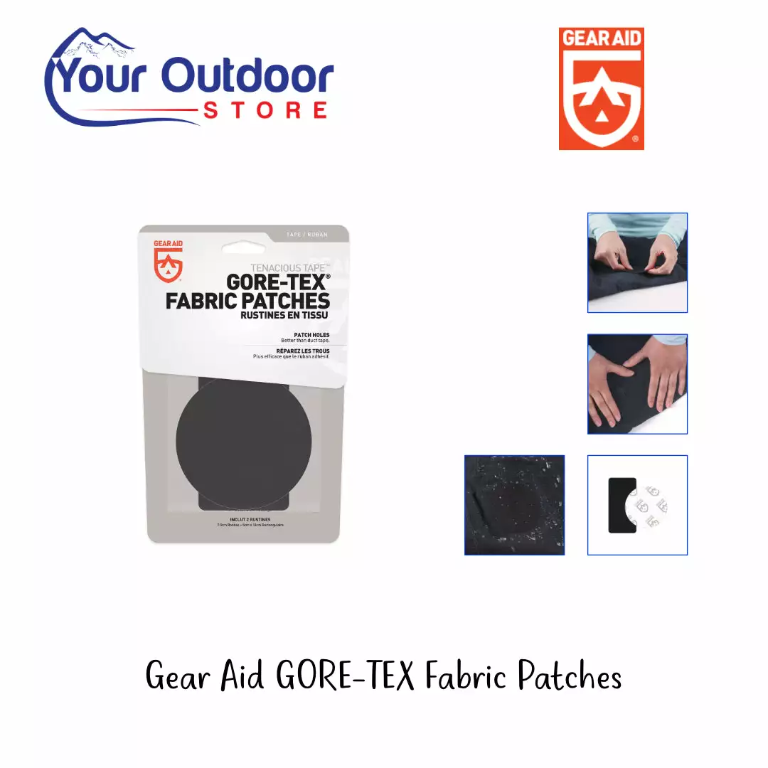 - Fix virtually any type of GORE-TEX gear with durable fabric tape in two sizes (3″ round and 2″x4″ rectangle).