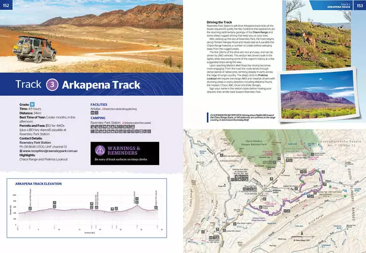 Written and researched by some of the most experienced outback travellers in Australia (including industry doyen, Ron Moon), the guide provides extensive and up-to-date information for the whole of the Flinders Ranges, from its southernmost tip, where it brushes against the waters of the Spencer Gulf, to its northern extremity beyond Arkaroola and the rugged Gammon massif.