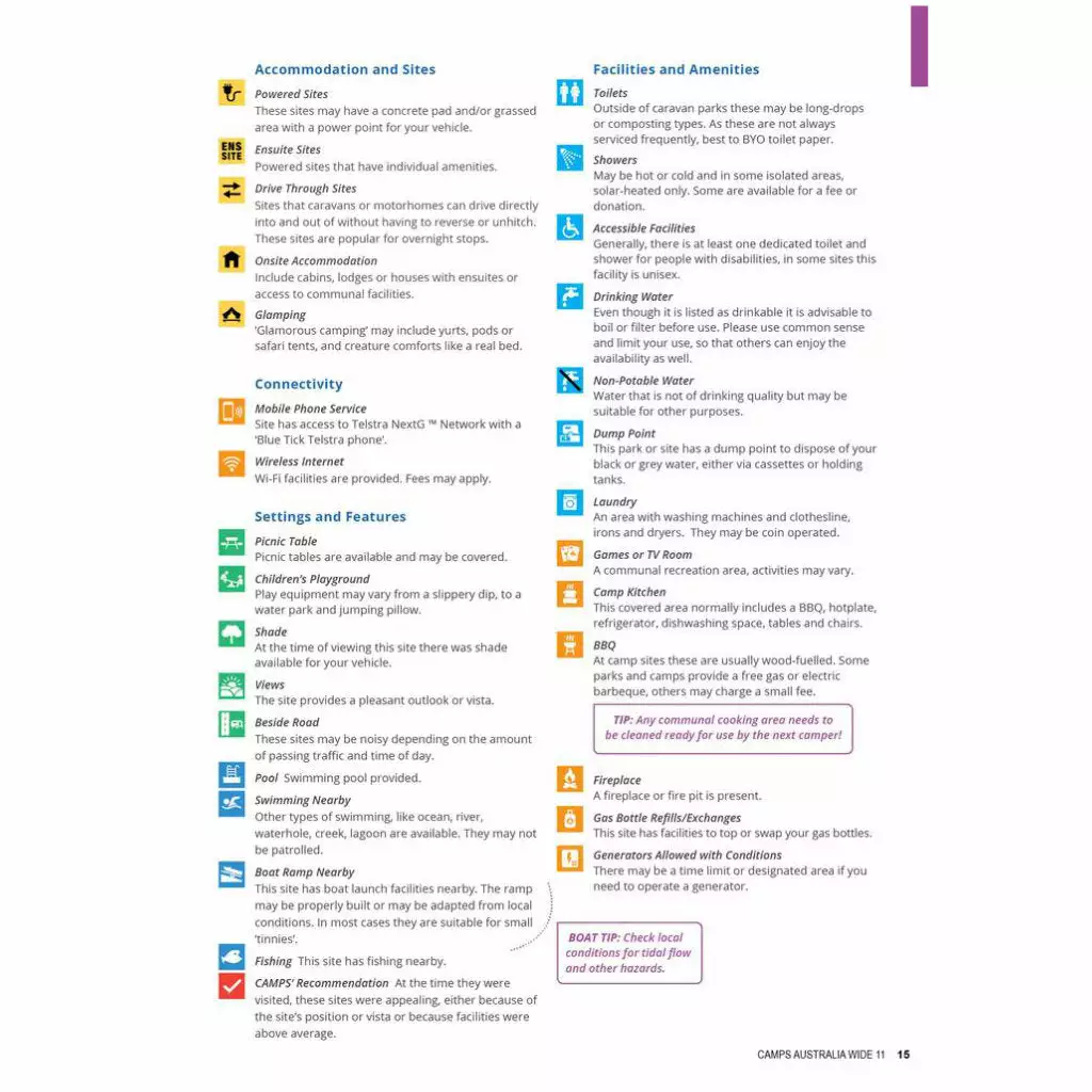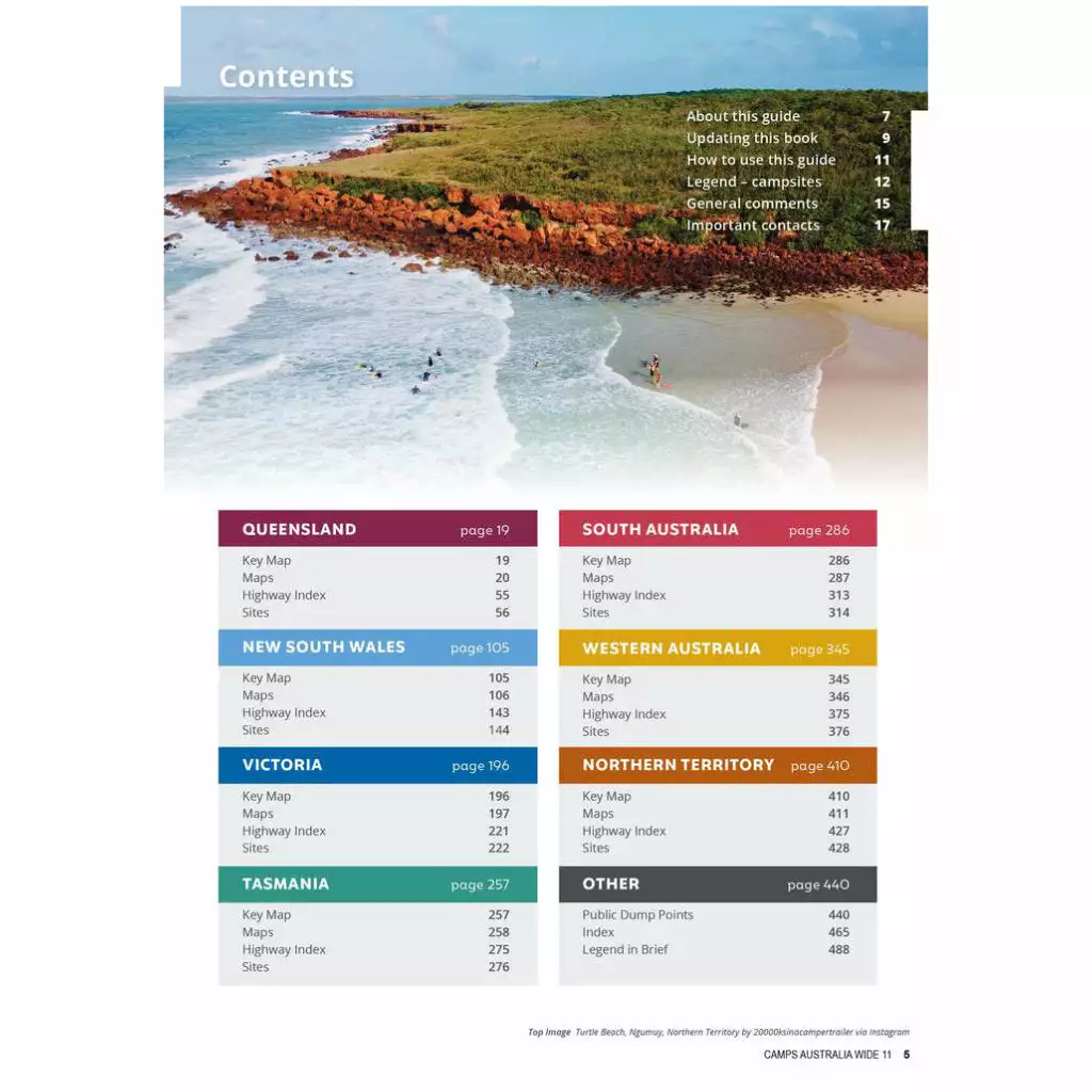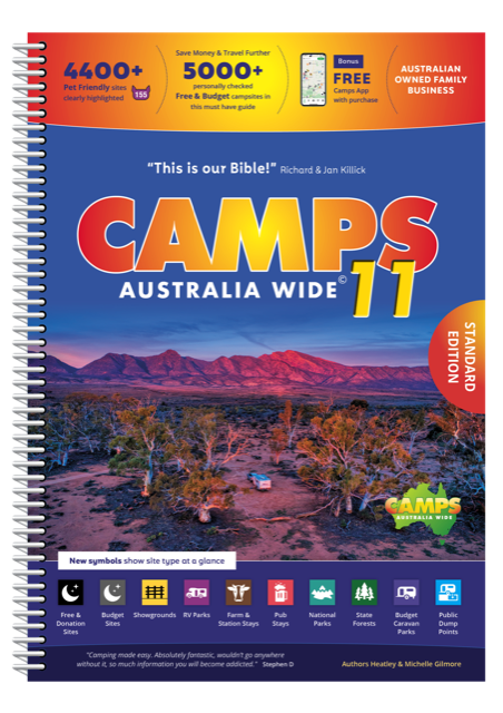 Camps 11 easy to read with campsite photos is the definitive guide to low-cost camping across Australia with over 3,800 camp site photos, featuring verified free camps, caravan parks, national and state parks, community campsites, showgrounds, station stays and much more.