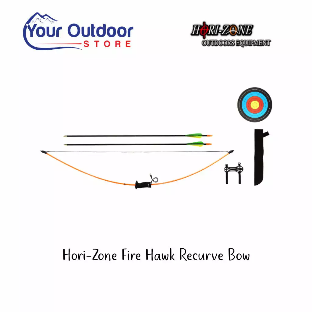 A complete bow package that’s perfect for young shooters and beginners. This Hori-zone Fire Hawk can be used by both righty and lefty. Constructed with durable composite limbs and exclusive comfortable foregrip.