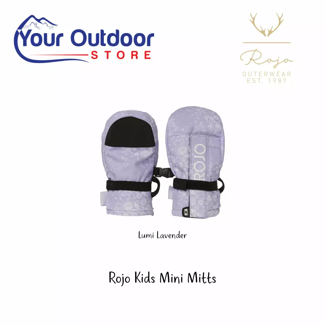 Easy insert snow mittens for your tiny toddler. Features an adjustable wrist tightening strap and all your favourite ROJO Outerwear prints. 10K/10K rating, DWR, insulation, nose wipe and is made from plastic bottles otherwise destined for landfill. So, not only is this mitten perfect for your little one’s first snow trip, they are also helping our planet!