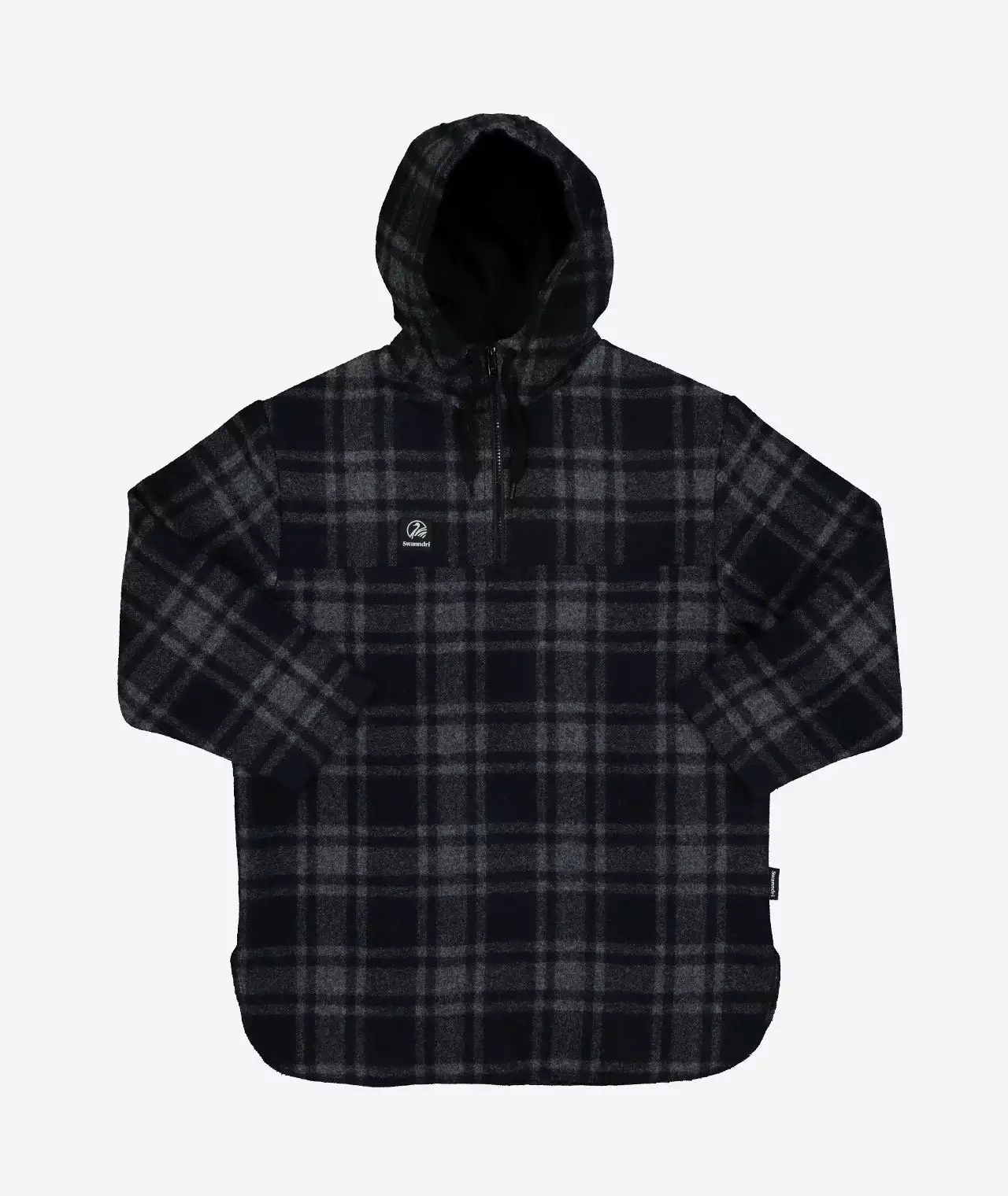 - A hooded pullover style with half zip