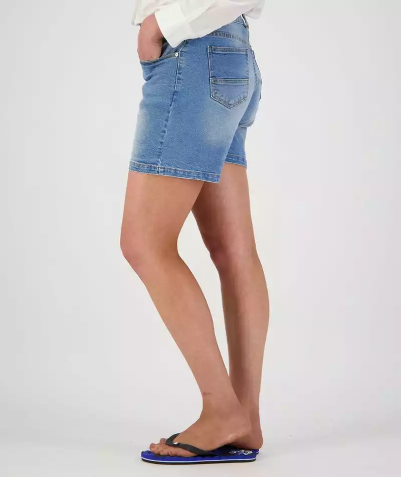 Every wardrobe needs a denim short and this is the one! With stretch for comfort this will be your summer go to for work or play.